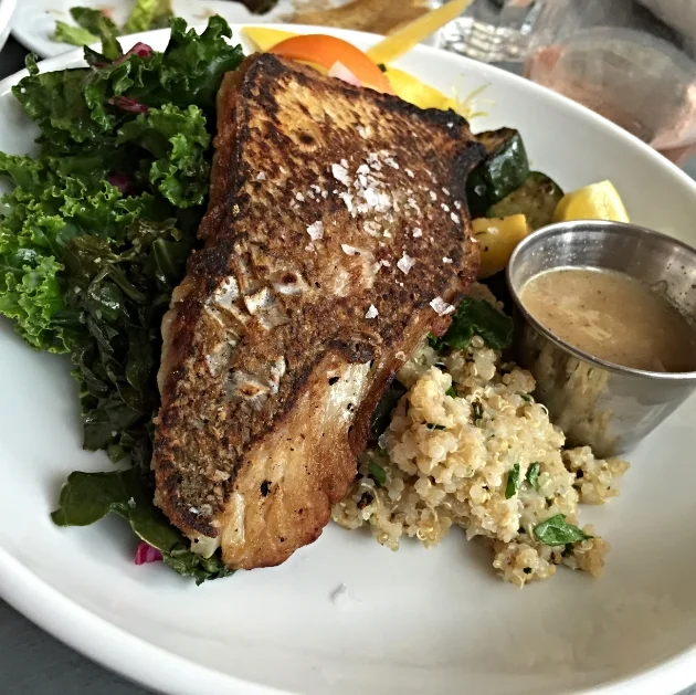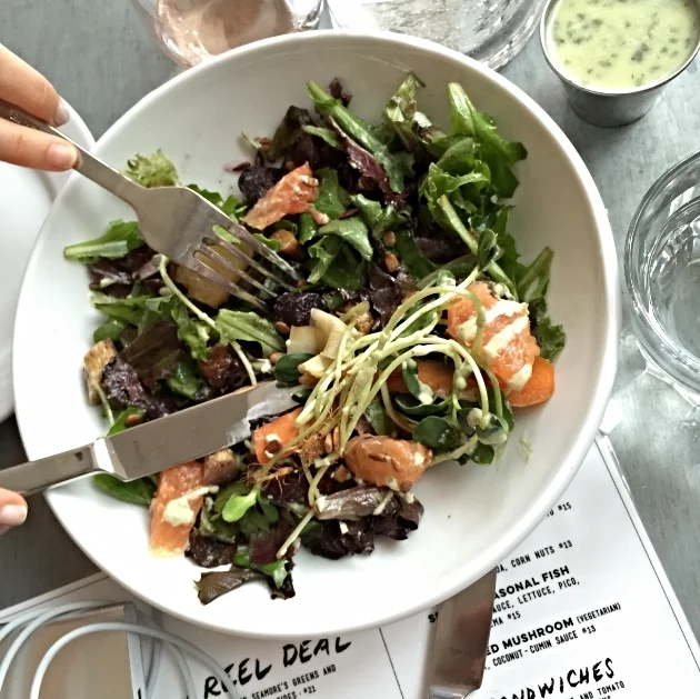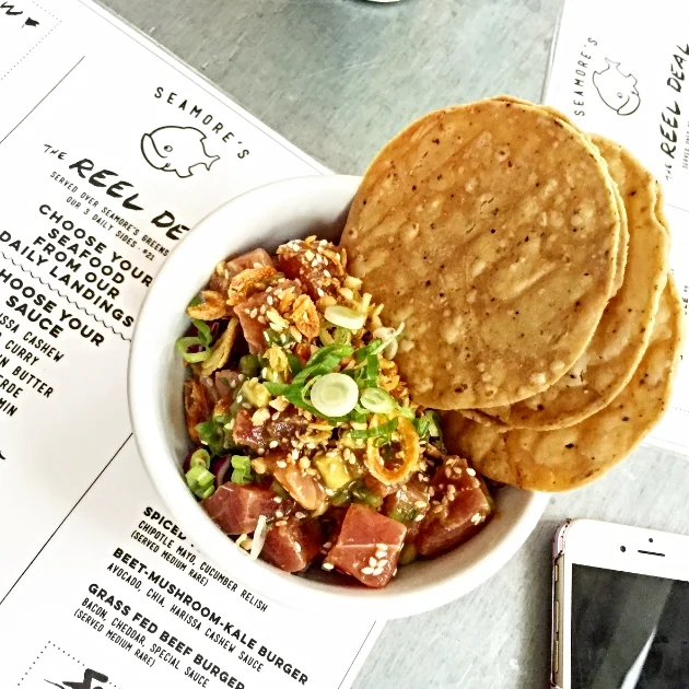 If it's straight up fish you crave, you can choose from Seamore's daily specials which is served over greens and your choice of 3 daily sides and a choice of one of their 5 sauces. It's solid perfection.