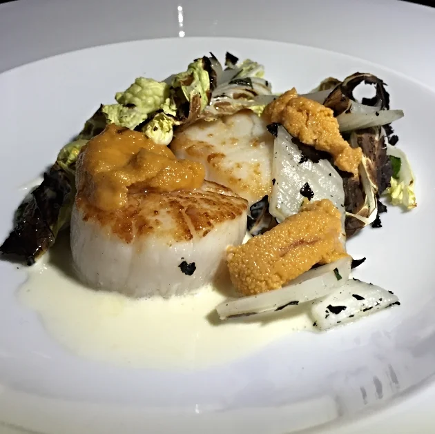 At Rebelle they combine Scallop with sea urchin, ginger creme, cabbage, and mint. An #uniaddict's dream. #yesplease.