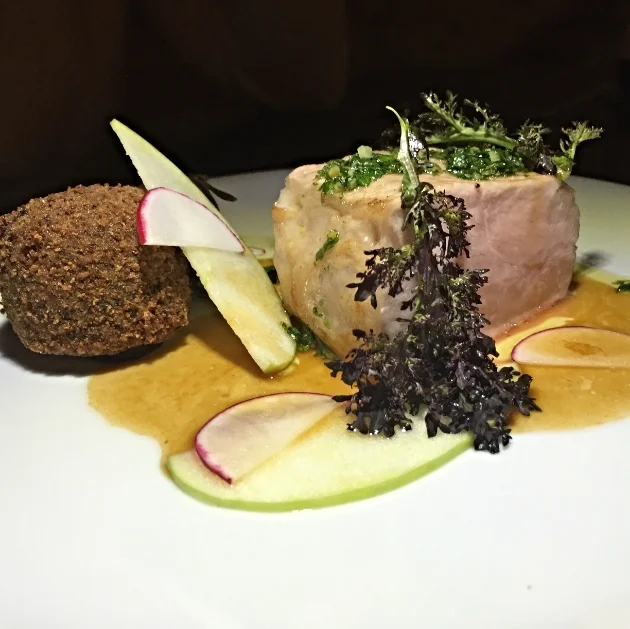 Monkfish with shellfish, hen of the woods, and sea bean is just lovely. Pork is accompanied by headcheese, ramps, and radish, and does a body good.